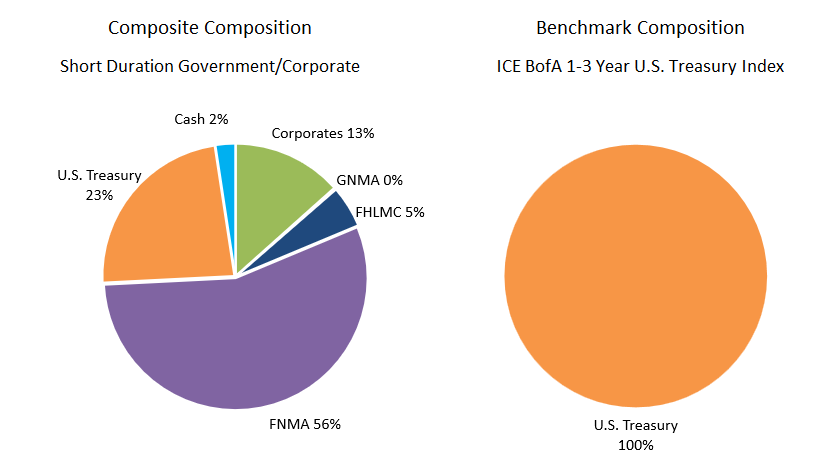 - The accounts are benchmarked to the ICE BofA Merrill Lynch 1-3 Year U.S. Treasury Index and typically maintain duration between 1.0 and 2.5 years.